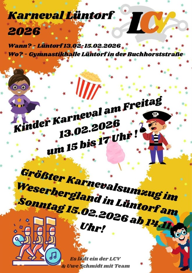 Lüntorf steht kurz vor dem Höhepunkt der närrischen Zeit. Der Lüntorfer Carnevals-Verein (LCV), der bereits seit über 60 Jahren die Tradition in der Region pflegt, hat für das kommende Wochenende ein umfangreiches Programm für alle Altersgruppen vorbereitet.